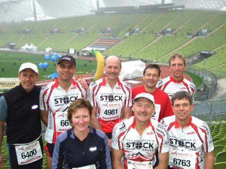 Unter optimalen Bedingungen, 17° C und strahlendem Sonnenschein, standen unter mehr als 10.000 Teilnehmern auch elf Eschenbacher im Starterfeld neben dem Olympiastadion. Nach dem Startschuss um 10.00 Uhr ging bei den Athleten und mehreren 100 000 Zuschauern die Post ab. Dabei war die Streckenführung über Leopoldstraße, Siegestor, Marienplatz, Deutsches Museum und dem Englischen Garten sehr attraktiv. Mehrfach unterstützen die mitgereisten Angehörigen die Eschenbacher lautstark. Den Höhepunkt fanden die Läufer beim Einlauf durch das Marathontor mit Musik, künstlichem Nebel und einem tollen Empfang der 10.000 Zuschauer im Olympiastadion. Obwohl jeder erschöpft war, liefen die Läufer die letzten 300 Meter auf der Tartanbahn mit stimmungsvoller Unterstützung der Zuschauer wie auf einer Welle. Einen überragenden 35. Platz in der AK W35 erreichte Michaela Hausner bei ihrem zweiten Marathon in 3:30 Stunden und einem Gesamtplatz 158. 12 Wochen intensive Vorbereitung wurden mit sieben persönlichen Bestleistungen belohnt: Darunter Gaby Bößl in 3:51 Stunden, Wolfgang Grillenbeck (3:30), Christian Kraus (4:07), Wolfgang Danzer (4:12), Reinhold Danzer (3:31) und Olaf Heinisch (3:43). Klasse Zeiten erreichten auch Franz Fuchs in 3:59 Stunden und Ludwig Bößl (3:46). Mit gewohnt starkem Leistungsvermögen präsentierten sich Martin Fischer in 3:14 Stunden und Gerhard Stock (3:19).