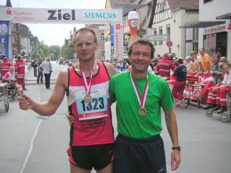 In der Fußgängerzone waren Stimmungsbands postiert, so dass oft ein Flair wie beim Berlin-Marathon aufkam. Mehrere Tausend Zuschauer entlang der abwechslungsreichen Strecke - vorbei an Hofgarten, Neuem Schloss, Universität und Röhrensee - feuerten die Läufer an und begleiteten sie bis zum Ziel auf dem Gelände der Maisel-Brauerei. Festzelt, Liveband sowie Speisen und Getränke wie auf einem Volksfest ließen die Strapazen schnell vergessen.