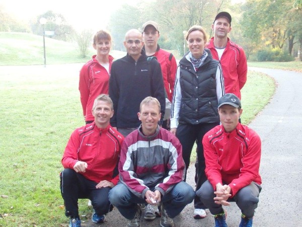 Sehr zufrieden mit ihren Leistungen beim München-Marathon waren die SCE-Sportler: (stehend, von links) Doris Ritter, Heiko Friedrich, Matthias Schwemmer, Tanja Lohner und Alfred Ritter sowie (vorne, von links) Thomas Lohner, Max Reiß und Daniel Palecki. Bild: ock